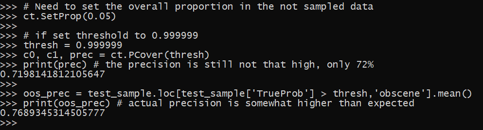 oos_prec = test_sample.loc[test_sample['TrueProb'] > thresh,'obscene'].mean()